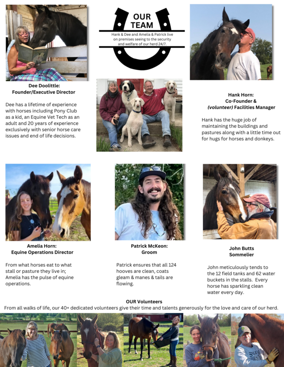To be a model sanctuary that promotes a safe and dignified life for all equines